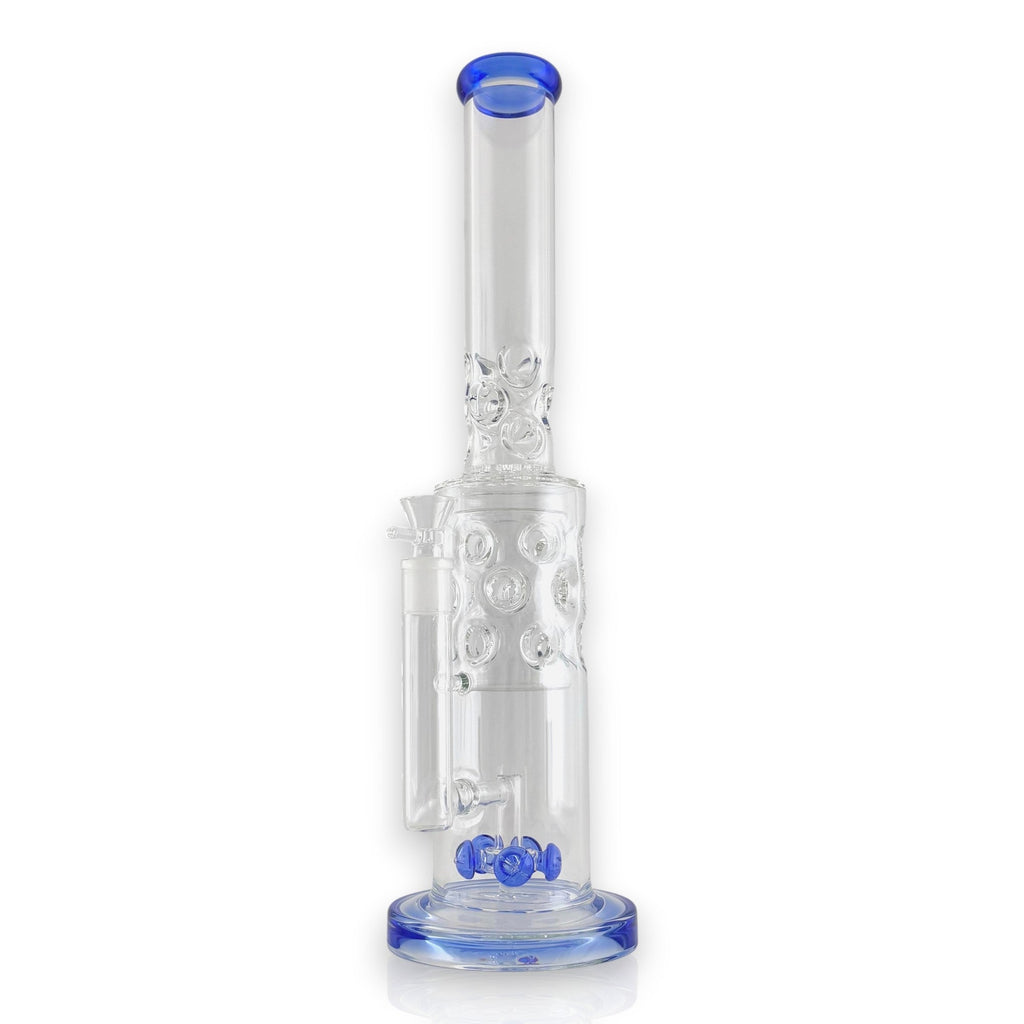 This 16-inch straight shooter water pipe combines durability, advanced filtration, and easy maintenance in a clean, functional design. Made from thick borosilicate glass, the straight-tube body is reinforced with precision-drilled centre holes that create additional percolation as smoke rises.