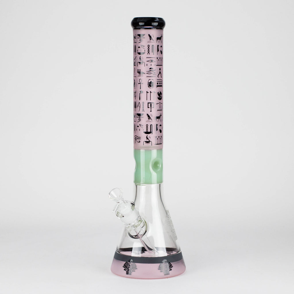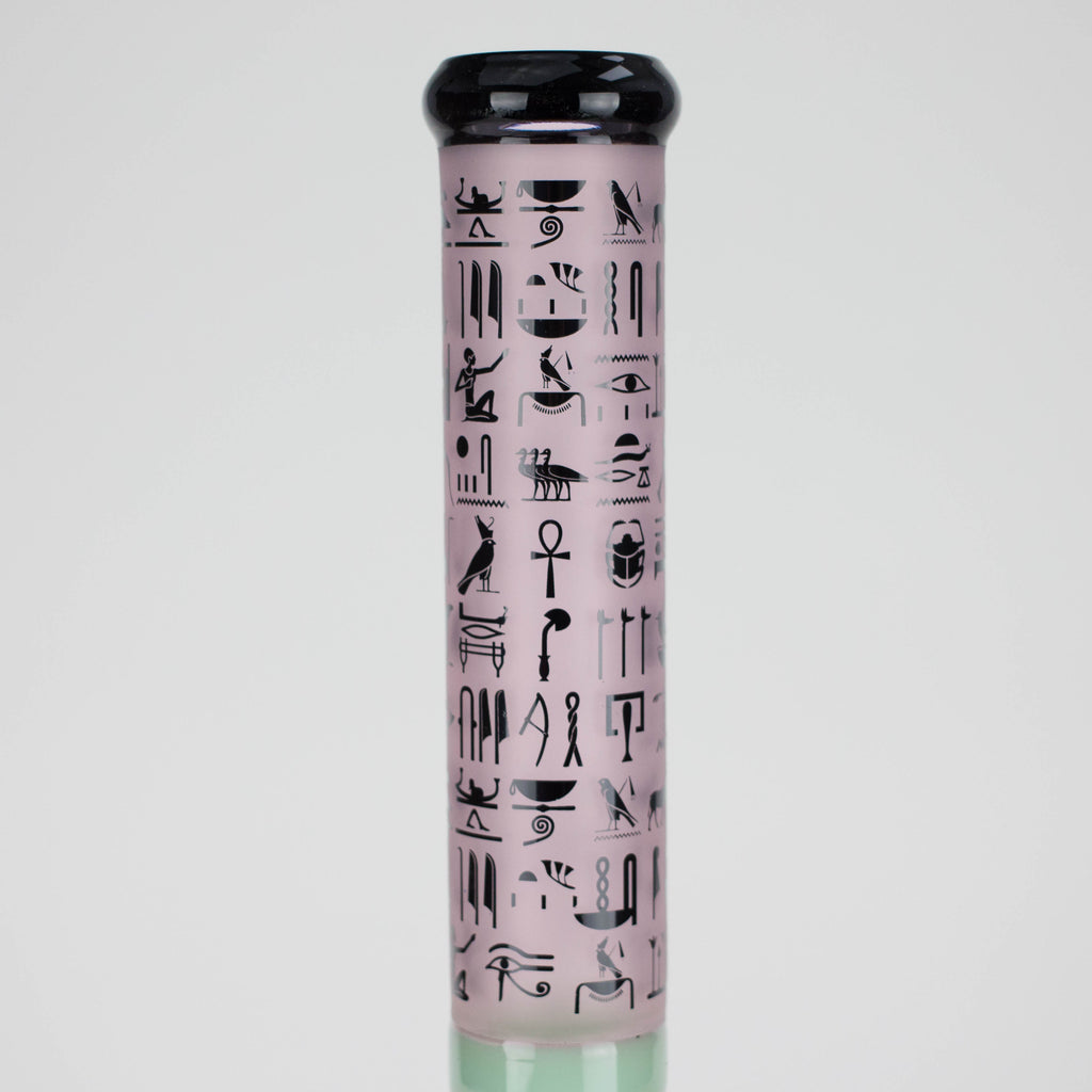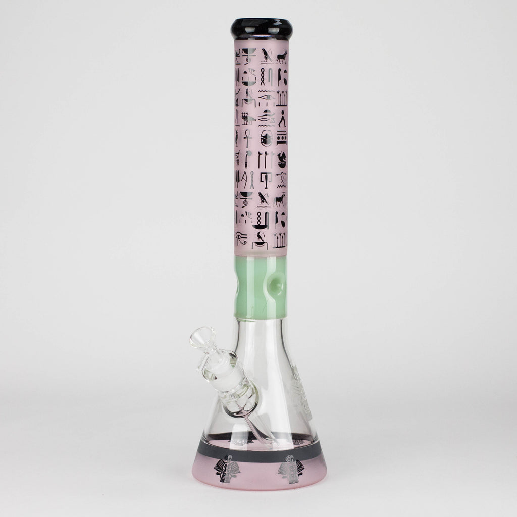 The tall straight tube is wrapped in a detailed Stone Age / ancient symbol design, giving it a unique, artistic look that stands out on display. A classic beaker base provides excellent balance and increased water capacity for cooler, cleaner hits, while the integrated ice catcher allows you to stack ice cubes for extra smoke cooling.