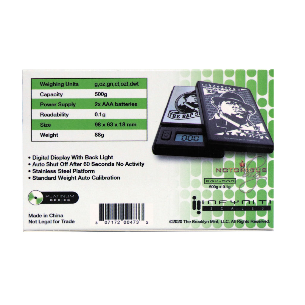 The Infyniti Notorious BIG Virus maintains the high quality of the Infyniti brand with that extra bit of style. Feel like a G with these high quality digital pocket scales.