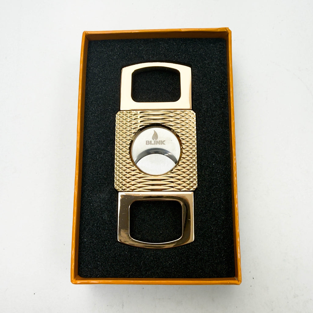 The BLINK Cigar Cutter is a premium accessory designed for clean, precise cuts with its sharp double-blade guillotine system. Crafted with a solid metal body and refined detailing, it offers both durability and a comfortable grip.