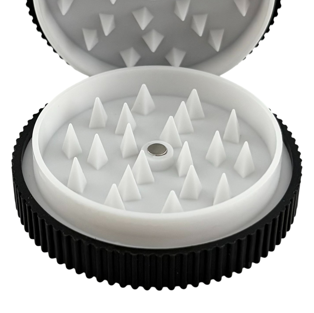 Each grinder is a 2-part design with sharp plastic teeth to provide a smooth, consistent grind every time. The compact size makes it easy to carry, while the lightweight plastic construction ensures durability and portability.