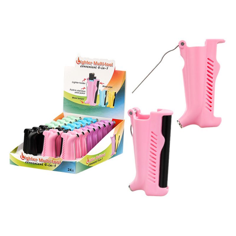 The FlameGrip Multi-Tool Lighter Sleeve is a practical, all-in-one smoking accessory designed to keep essential tools conveniently in one compact unit. This 4-in-1 multi-tool combines a lighter holder sleeve with built-in smoking tools, making it perfect for daily use, travel, and impulse retail sales.
