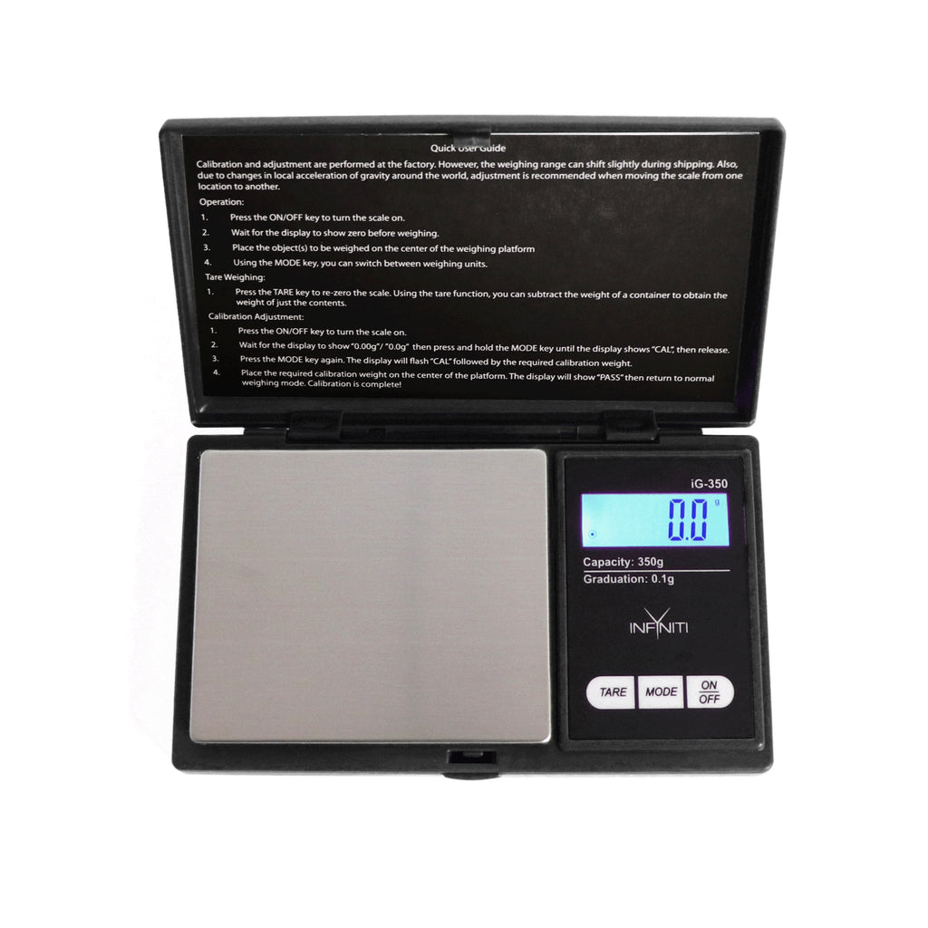 The Infyniti G-Force IG-350 mini digital scale maintains the high quality of the Infyniti brand with that extra bit of style. Feel like a G with these high quality digital pocket scales.