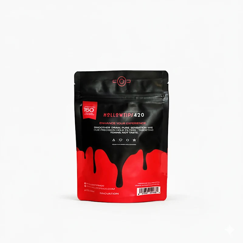 Now available in a resealable pouch containing 150 large filters, each crafted with the same precision-cut design and offered in four distinct inner-hole shapes (Heart, Star, Circle, and Triangle) for unique airflow and draw feel. Perfect for frequent rollers and anyone who values a cleaner, smoother, and more consistent smoking experience.