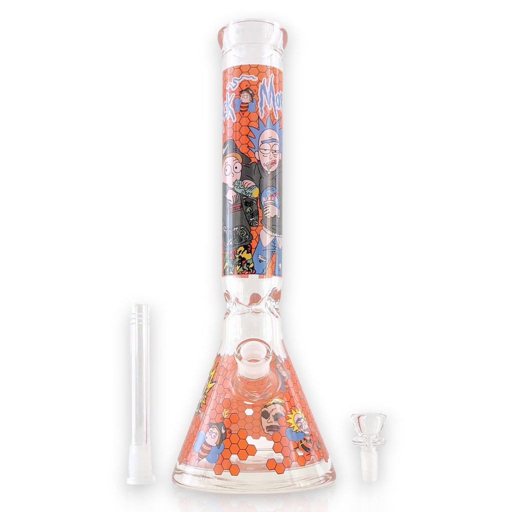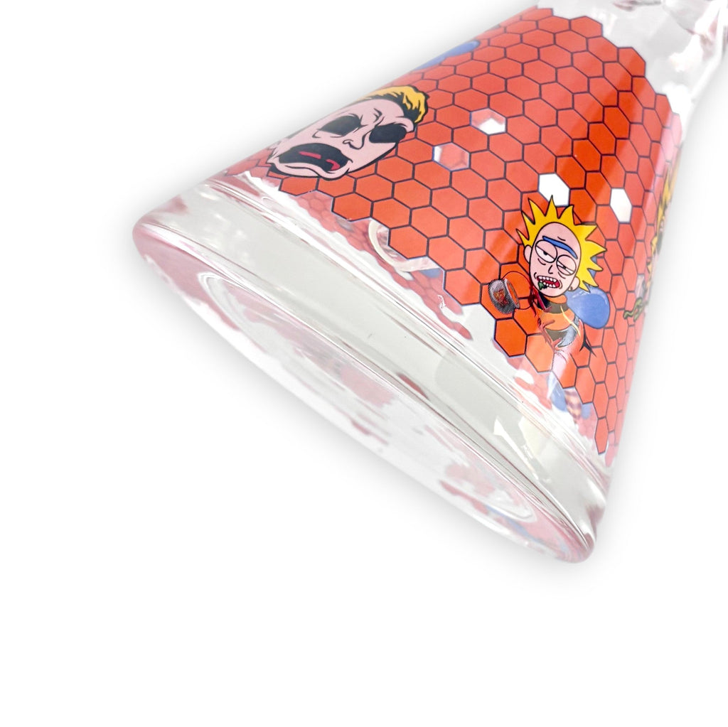 Add a burst of color and personality to your glass lineup with this vibrant 14" beaker-style bong. Built from 7mm extra-thick borosilicate glass, it delivers exceptional durability and features a heavy-duty reinforced base that provides rock-solid stability. The 50mm diameter tube ensures smooth airflow and comfortable pulls, while the honeycomb-patterned artwork and playful cartoon-style characters give this piece a fun, standout aesthetic.