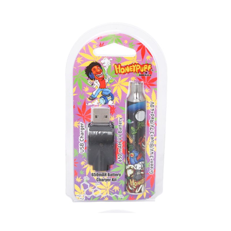 Each unit features a 650mAh rechargeable battery, offering extended usage in a pocket-friendly form. The colorful LED indicators make voltage selection easy, while the vibrant HoneyPuff Toon designs stand out on retail shelves.