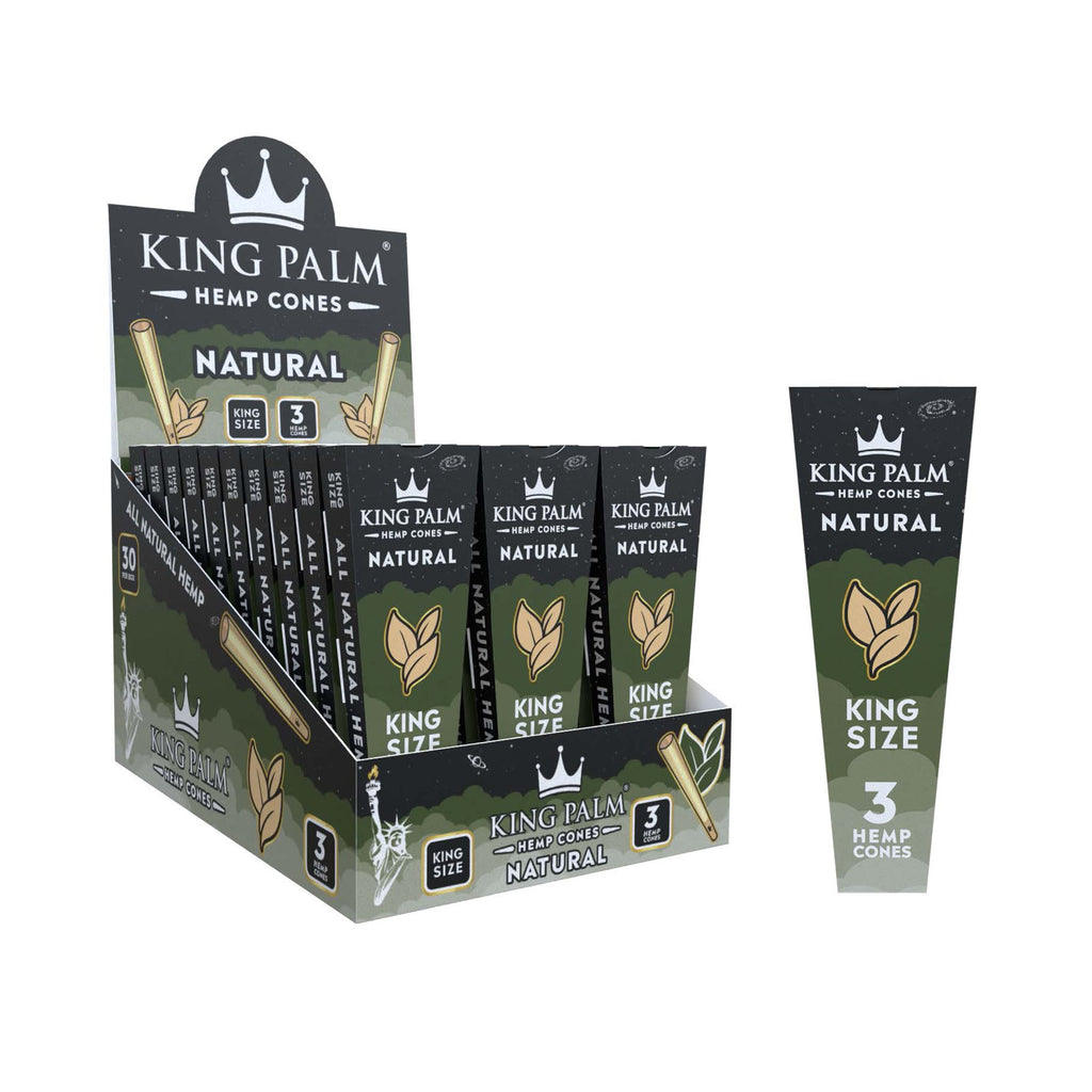 King Palm Hemp Cones are pre-rolled cones with a filter tip that features a flavor bead that gets popped to activate the flavor. These are king size cones made of natural hemp paper with a paper filter tip that has a flavor pearl tucked inside. Natural fruit terpenes are infused in the flavor pearl. Three cones come in each pack, and each display includes 30 boxes.
