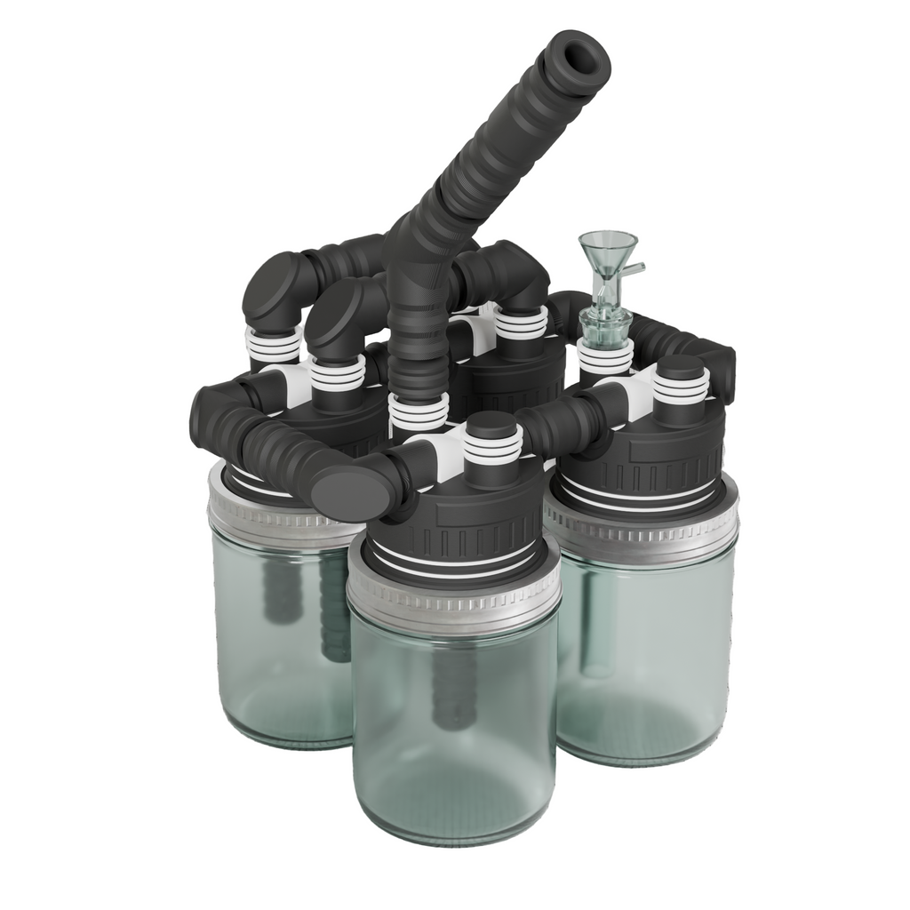 Designed and manufactured in Sudbury, Ontario, Canada, the MCS system uses non-toxic, biodegradable plastic and 19/22mm standard glass fittings (ASTM E676) for universal compatibility. Fully modular and endlessly customizable, the Single Jar MCS offers a smooth introduction to a growing ecosystem that’s both sustainable and fun to expand.