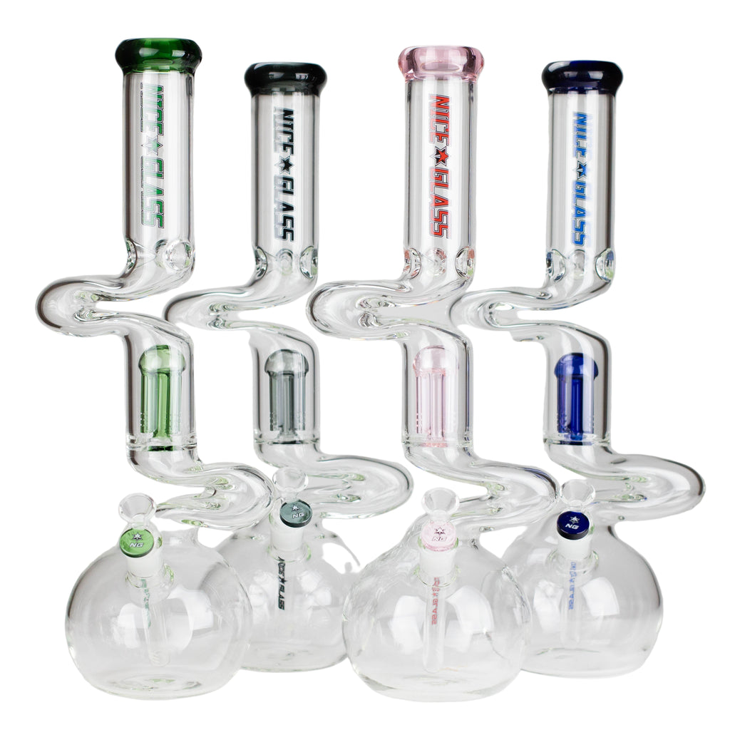 Upgrade your sessions with the Nice Glass 18" Double Zong Beaker, a compact yet powerful piece designed to deliver extra-cool, ultra-smooth hits.