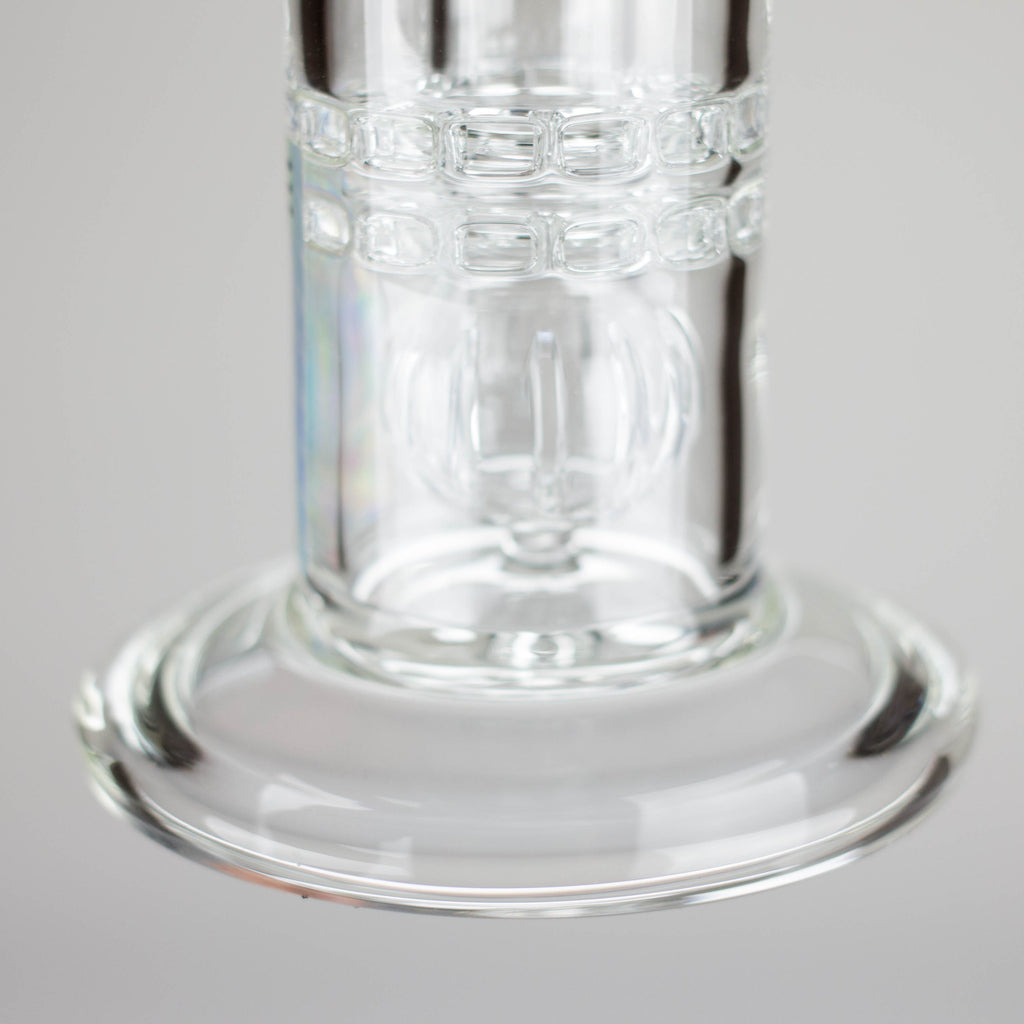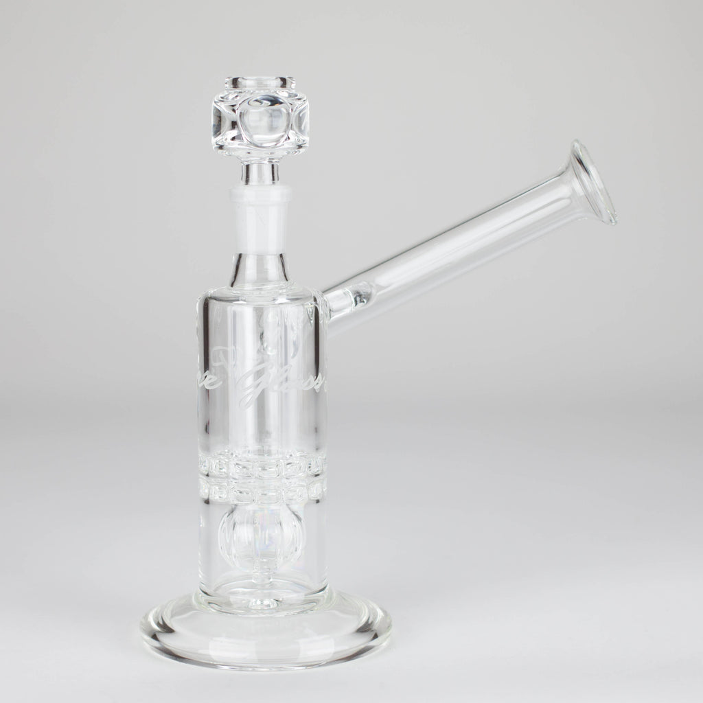 The Pure Glass Mini Torus-F bong is a compact yet powerful piece, offering exceptional filtration in a sleek 7" design. As the smallest of the Pure Glass TORUS line, it’s built for smooth hits, featuring three levels of filtration: a stunning ball perc at the base and two ratchet disc percs directly above. The "Pure Glass" brand is artistically deeply etched into the clear body, enhancing its aesthetic. Perfect for those looking for performance and style in a small package. Comes with a flower bowl.