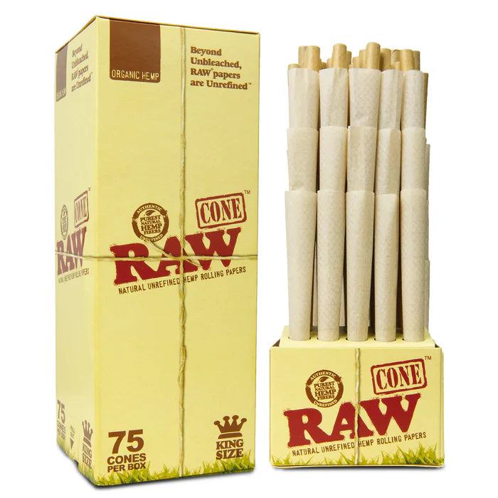 Raw Organic Hemp King Size Pre-Rolled Cones 75 Pack