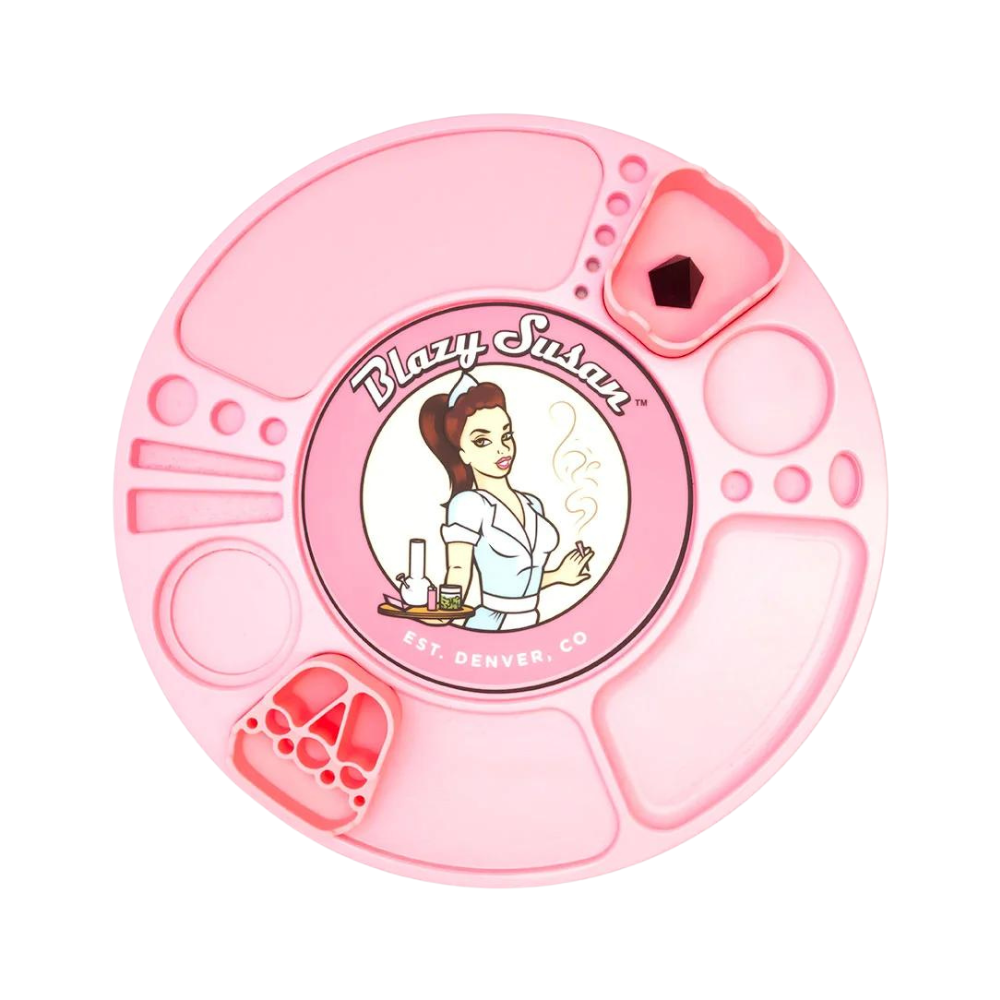 The Original Pink Blazy Susan Spinning Rolling Tray features an innovative design with small compartments for all different types of accessories and supplies!