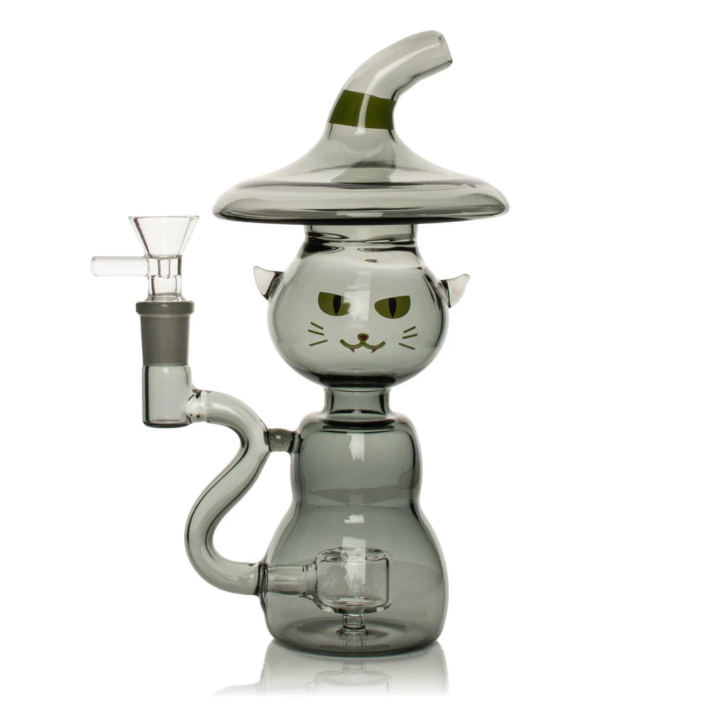 Enjoy the purr-fect puff-puff-pass with the Black Cat Bubbler from Red Eye Glass®. Includes a removable 100% borosilicate bowl and an angled mouthpiece design to keep you feline fine with every hit.