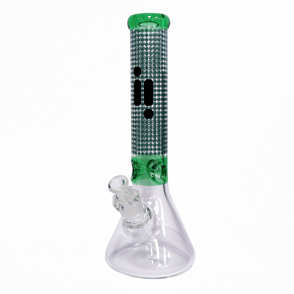 ["all water pipes","color_blue","color_green","color_pink","color_smoke","color_teal","features_beaker base","features_ice catcher","features_straight tube","infyniti glass","material_glass","size_14 IN","style_frosted","water pipe"]