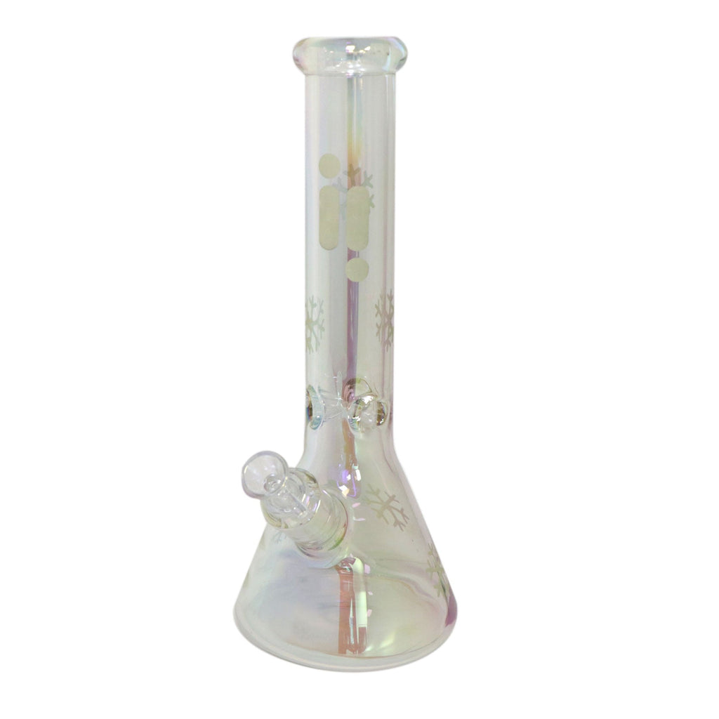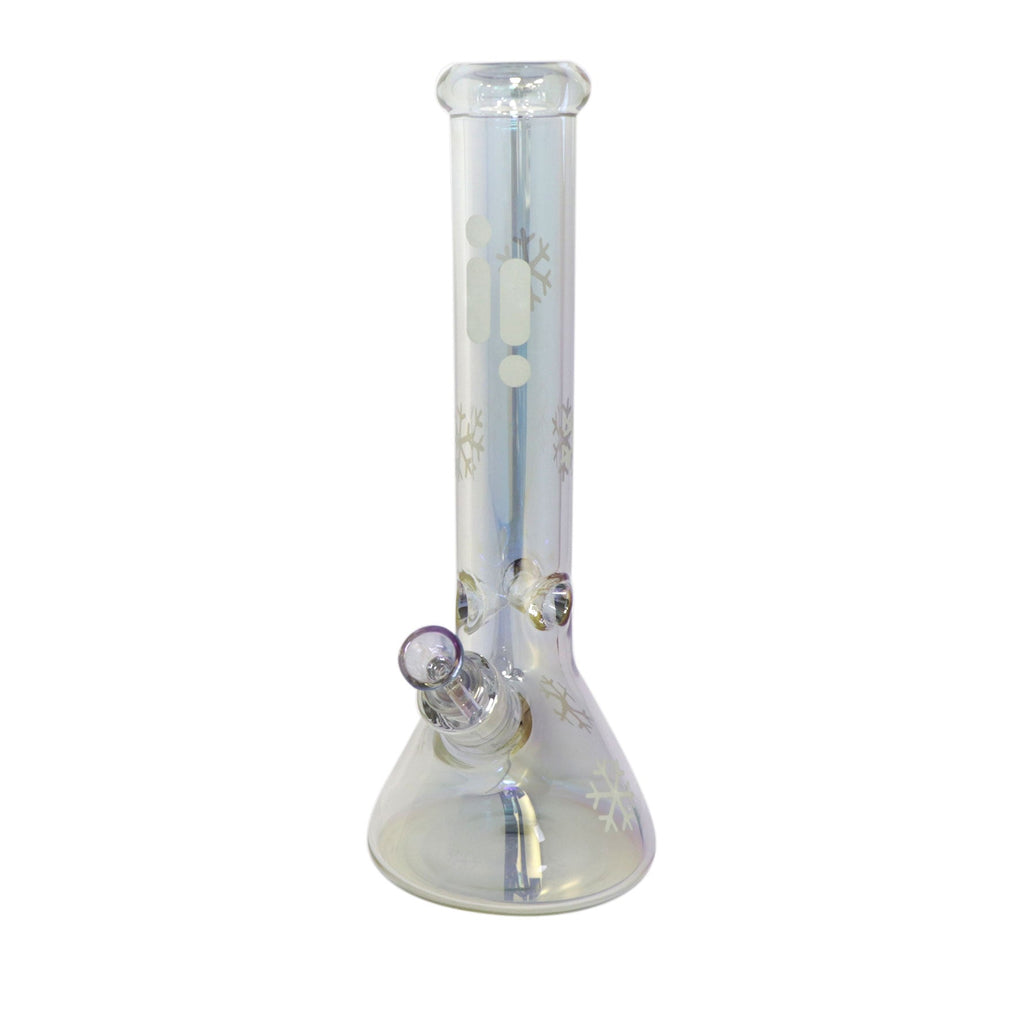 14" Water Pipe with Beaker Base Chrome Finish with Snowflake Design