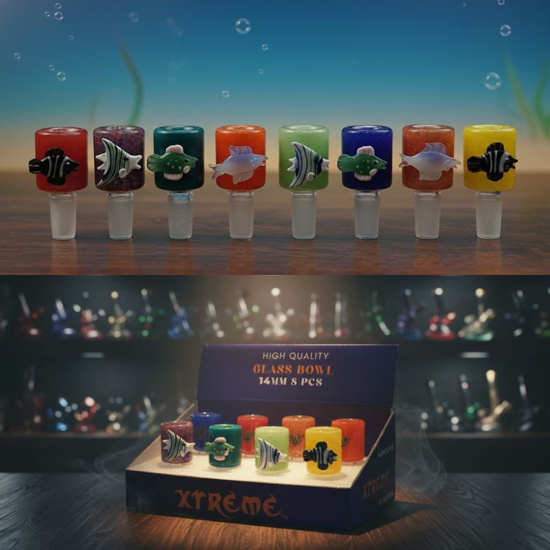 O Xtreme | 14mm Fish Frit Art Color Bowl – Assorted Box of 8 (CC19)